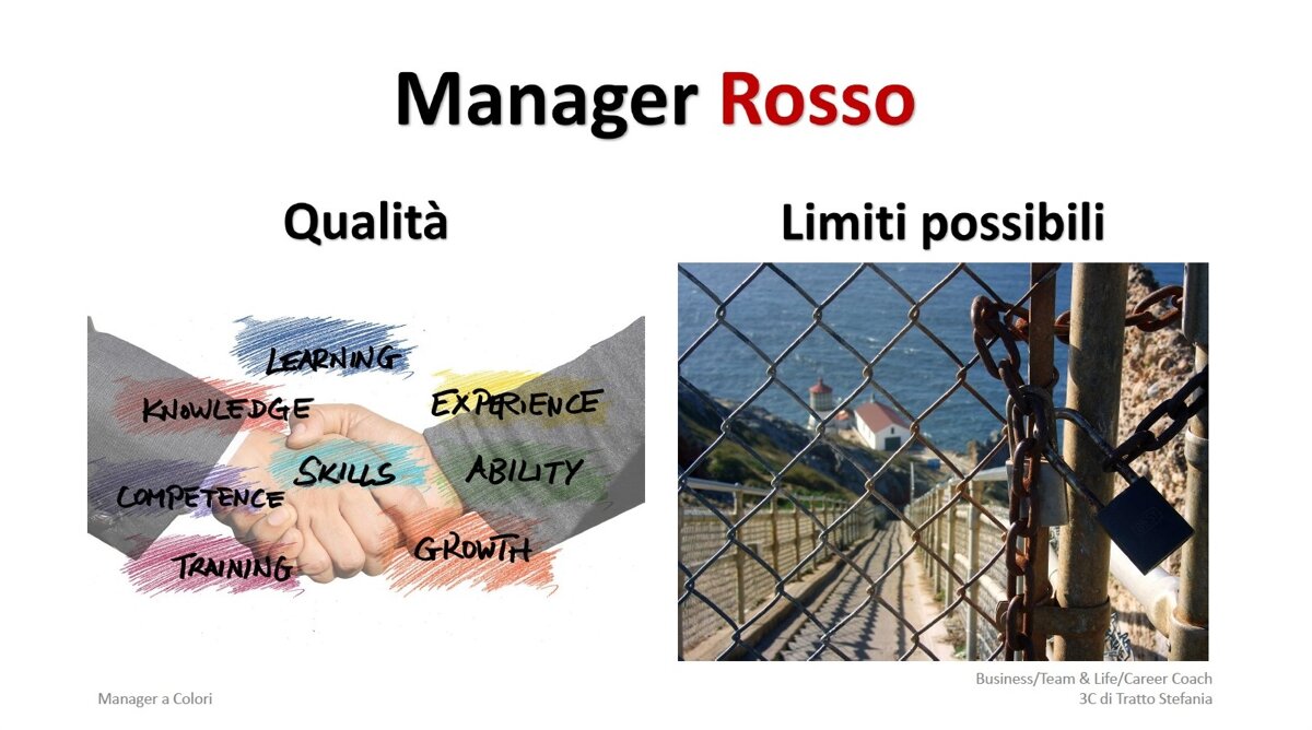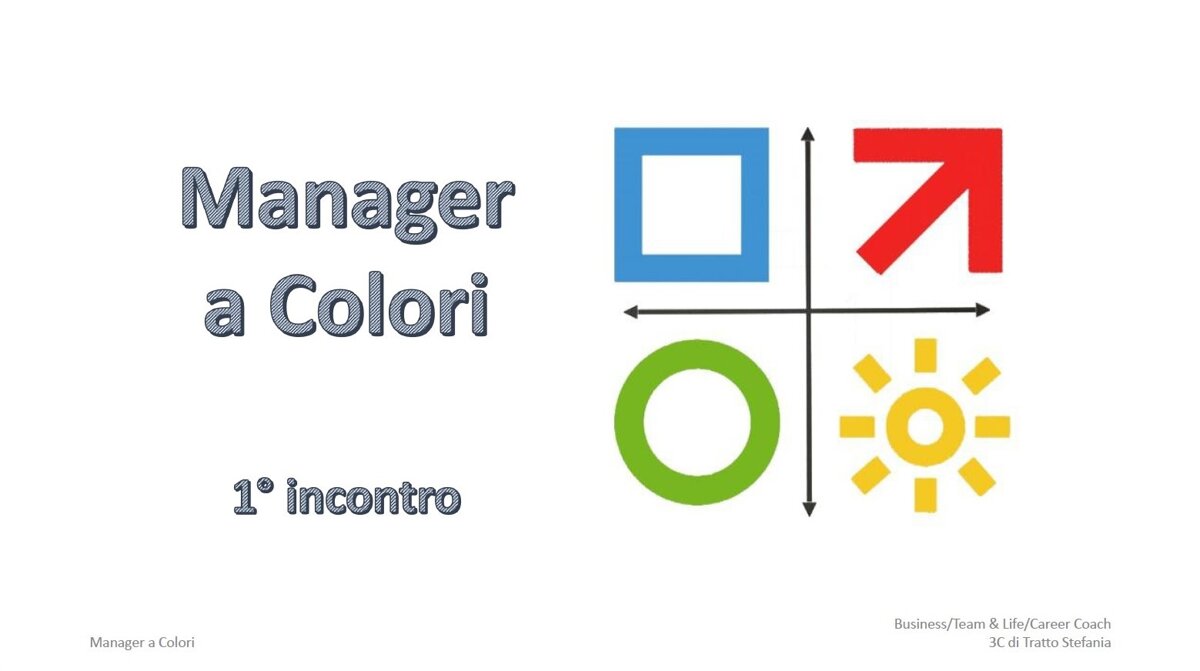 Il Corso "Manager a Colori" si divide in 2 incontri da 4 ore ciascuno, di cui il primo incontro coincide in toto col Corso Base, che può essere seguito da tutti i collaboratori dell’azienda, dove si apprende il metodo 4Colors® appunto dalle basi, che è quindi propedeutico al secondo incontro che va ad approfondire nello specifico l’uso del metodo 4Colors® nell'area Manageriale.