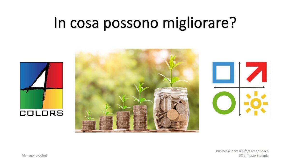 Con il metodo 4Colors® è possibile sviluppare la comprensione di se stessi e capire come potremmo essere visti dagli altri, compresi ovviamente i propri collaboratori.