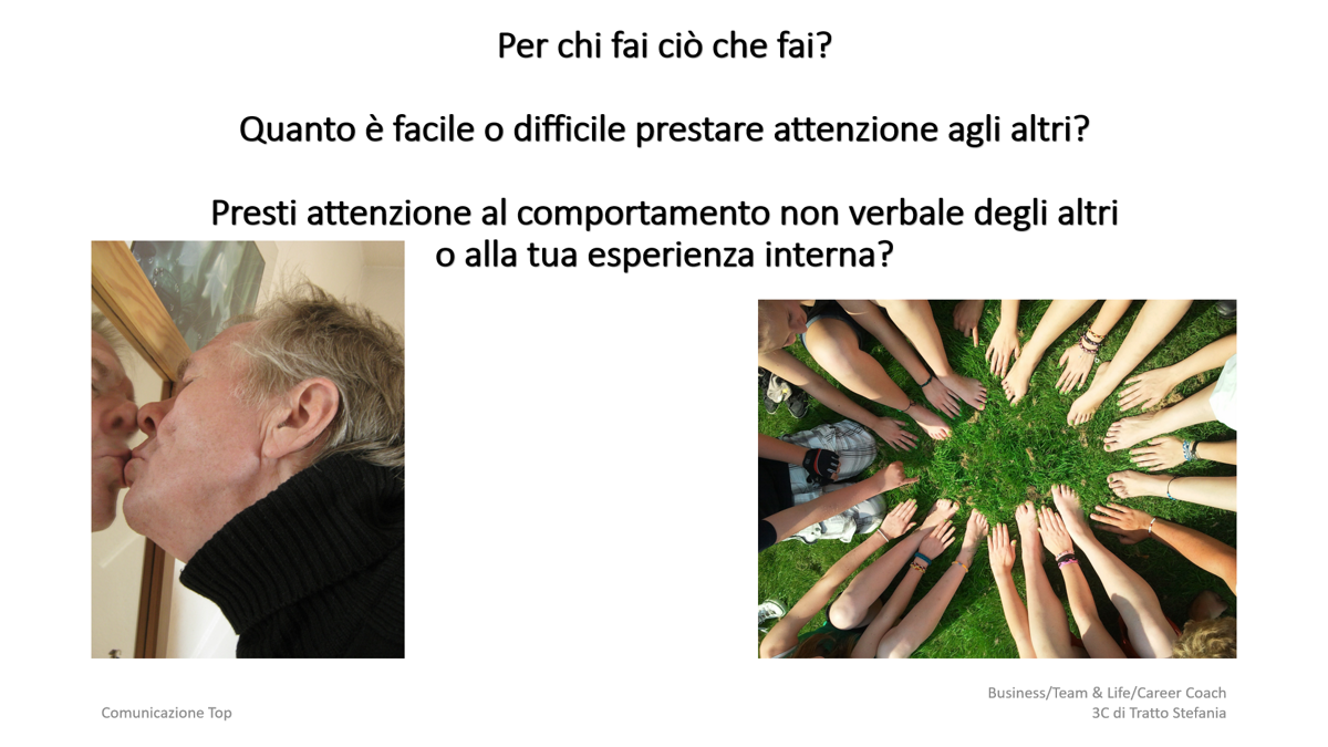 Questo corso è il seguito del corso “Comunicazione efficace”, per arrivare a capire ancor più in dettaglio come agiamo e comunichiamo in modo diverso dagli altri, e quindi come interagire in modo fattivo con tutti.