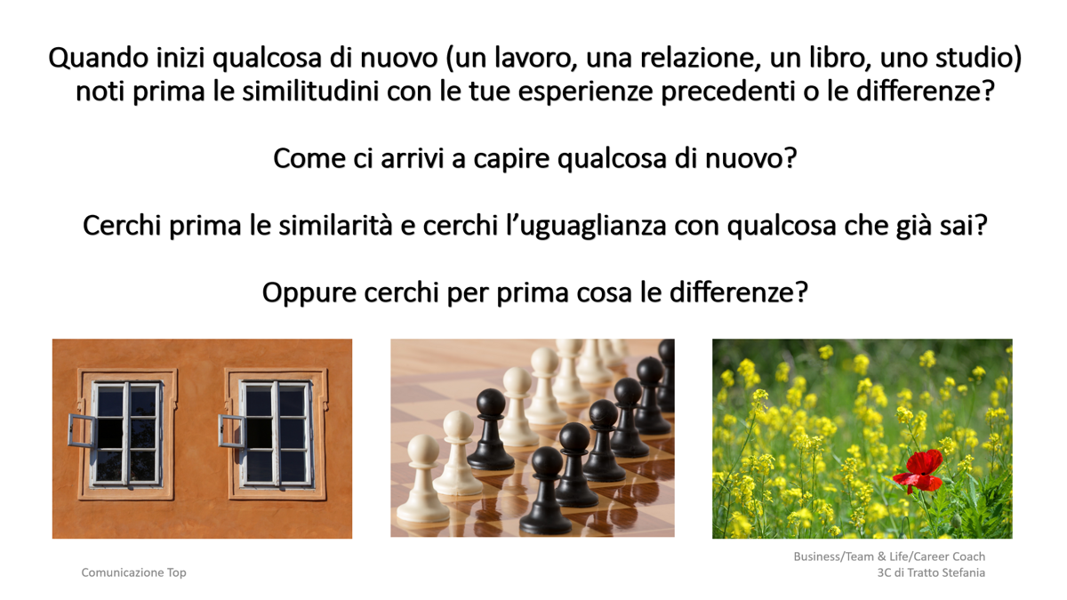 · lo stile opposto: la nostra zona di mancanza di comfort, quindi lo stile usato invece da quelle persone con cui ci risulta un po’ difficile comunicare e farci comprendere, e andremo a scoprire dei consigli per riuscire a comunicare con queste persone e comprendere il loro punto di vista, in modo da cercare di farci comprendere a nostra volta